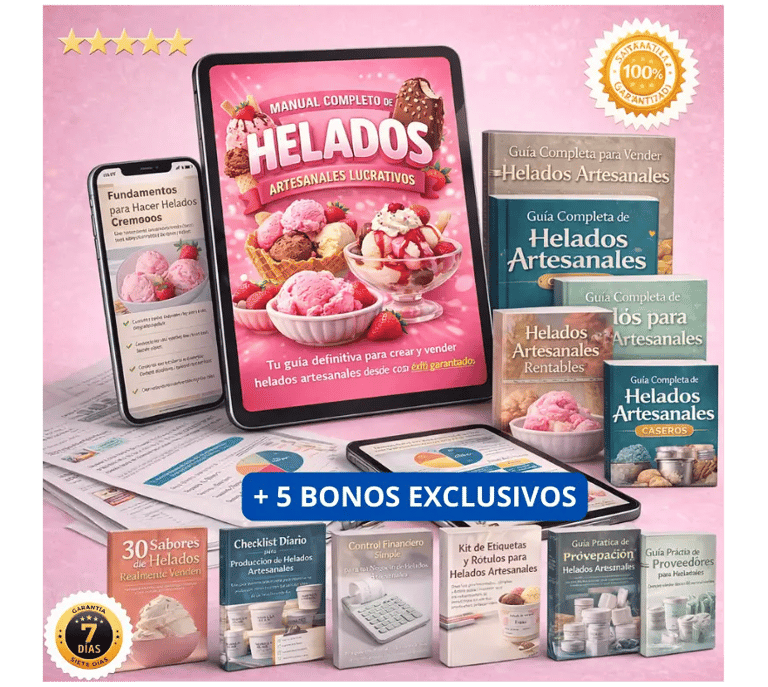 Recetas prácticas, explicaciones claras y consejos aplicables que te guiarán paso a paso en la creación de helados artesanales rentables, desde la preparación hasta la venta, de forma simple y accesible.